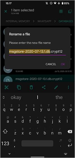 - Pervadinkite ją į msgstore-latest.db.crypt12.