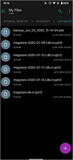 - Naujausia atsarginė kopija bus pavadinta msgstore.db.crypt12.