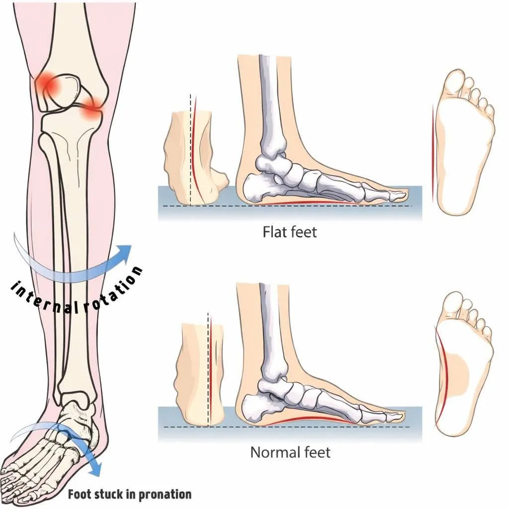 Didžiausia problema atsiranda tada, kai pėda pernelyg pronuota ir negrįžta į viršų atsispyrimo metu. Tuomet blauzdikaulis linkęs suktis į vidų. Šis vidinis sukimasis perkelia įtampą į viršų tiesiai į kelio sąnarį.
