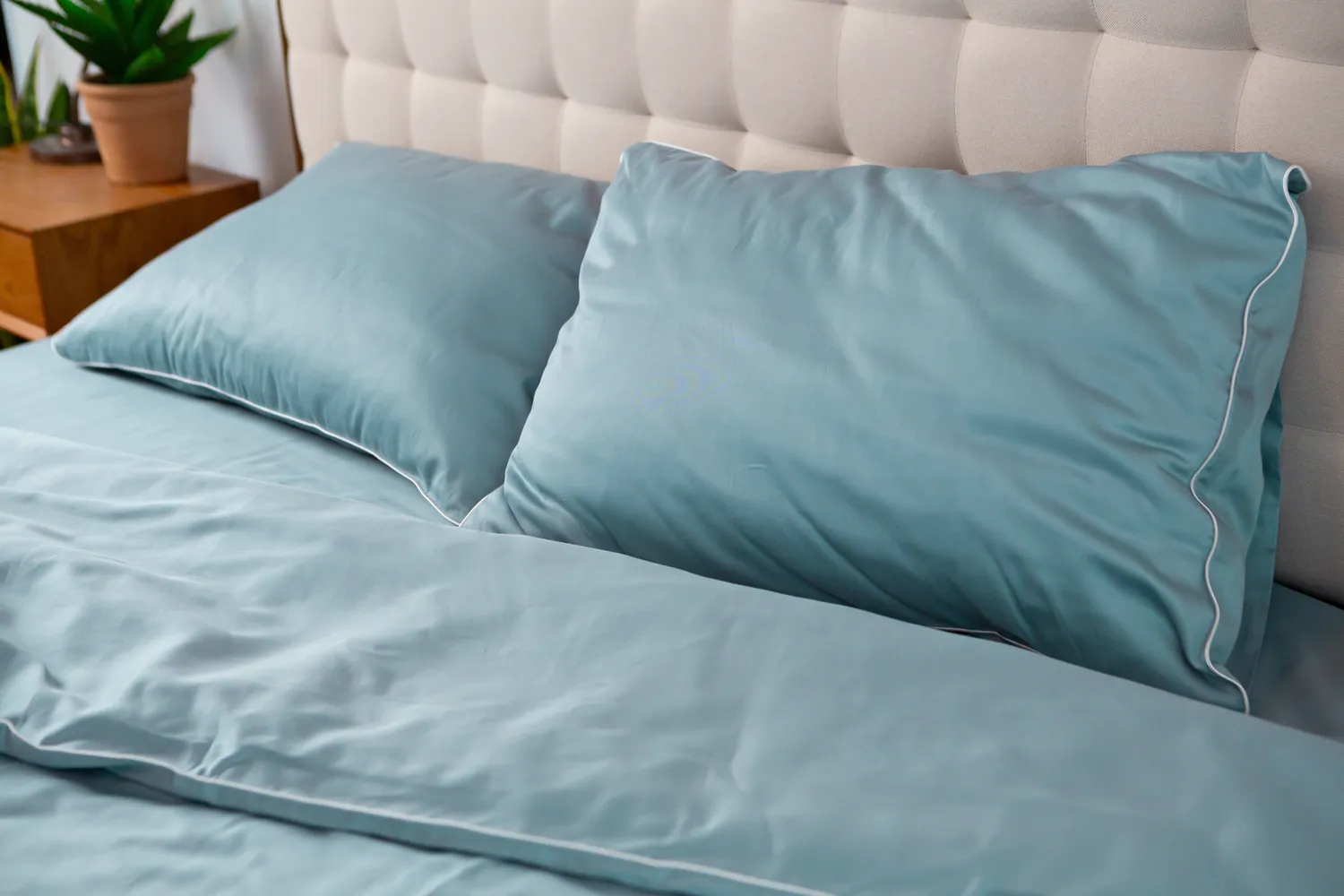 Geriausia rinktis mėlyną, žalsvą, pilkai žydrą arba švelniai smėlinę patalynę. Šie tonai padeda organizmui natūraliai pasiruošti poilsiui, mažina įtampą ir gerina miego kokybę.