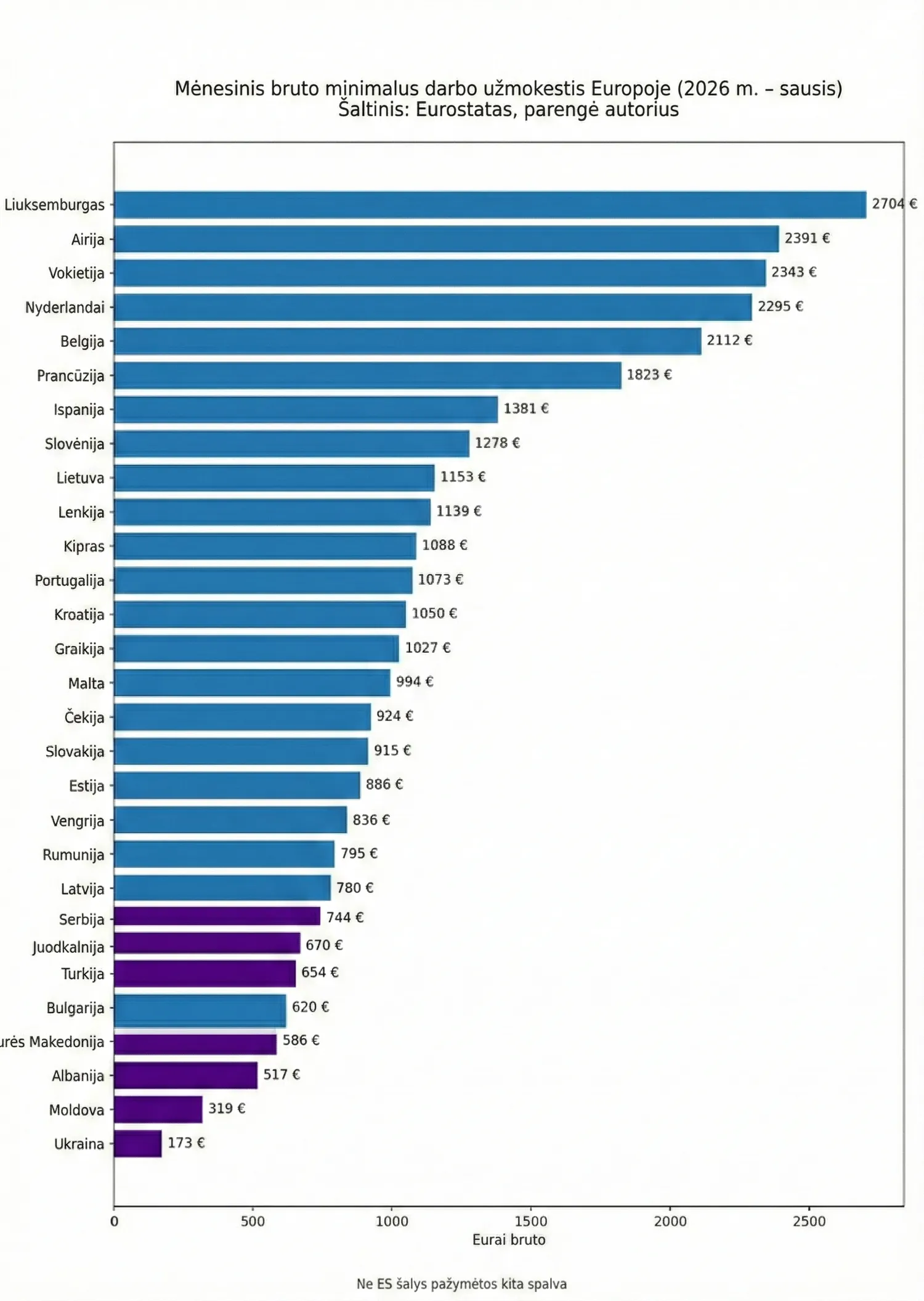 Šaltinis: https://www.euronews.com/business/2026/02/03/minimum-wages-in-2026-which-countries-pay-the-most-across-europe