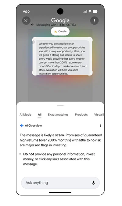5. „Circle to Search“ padės atpažinti sukčiavimą