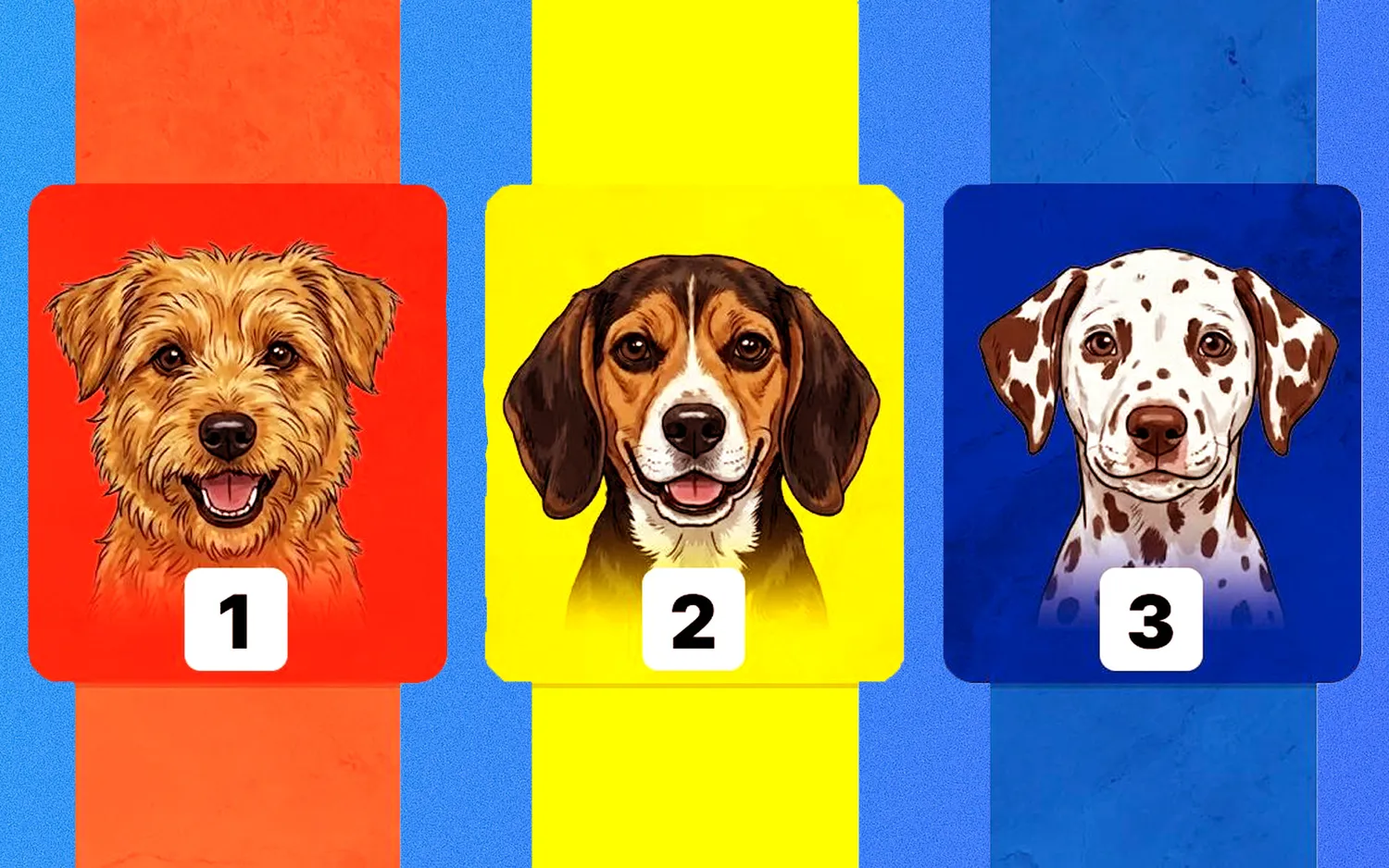Pažvelkite į paveikslėlį su trimis šunimis ir pasirinkite tą, kuris jums labiausiai patinka. Nesvarstykite per ilgai, nesistenkite analizuoti – pasikliaukite pirmuoju jausmu. Šis testas atspindi jūsų dabartinę emocinę būseną, todėl ateityje rezultatas gali pasikeisti.