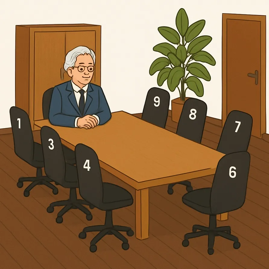 Įeinate į posėdžių salę. Jūsų viršininkas jau sėdi stalo gale, aplinkui — devynios tuščios kėdės. Akimirka, kai pasirenkate vieną iš jų, atrodo nereikšminga, tačiau psichologai tikina priešingai: būtent šis instinktyvus sprendimas gali pasakyti apie jus daugiau, nei kasdieniniai žodžiai.