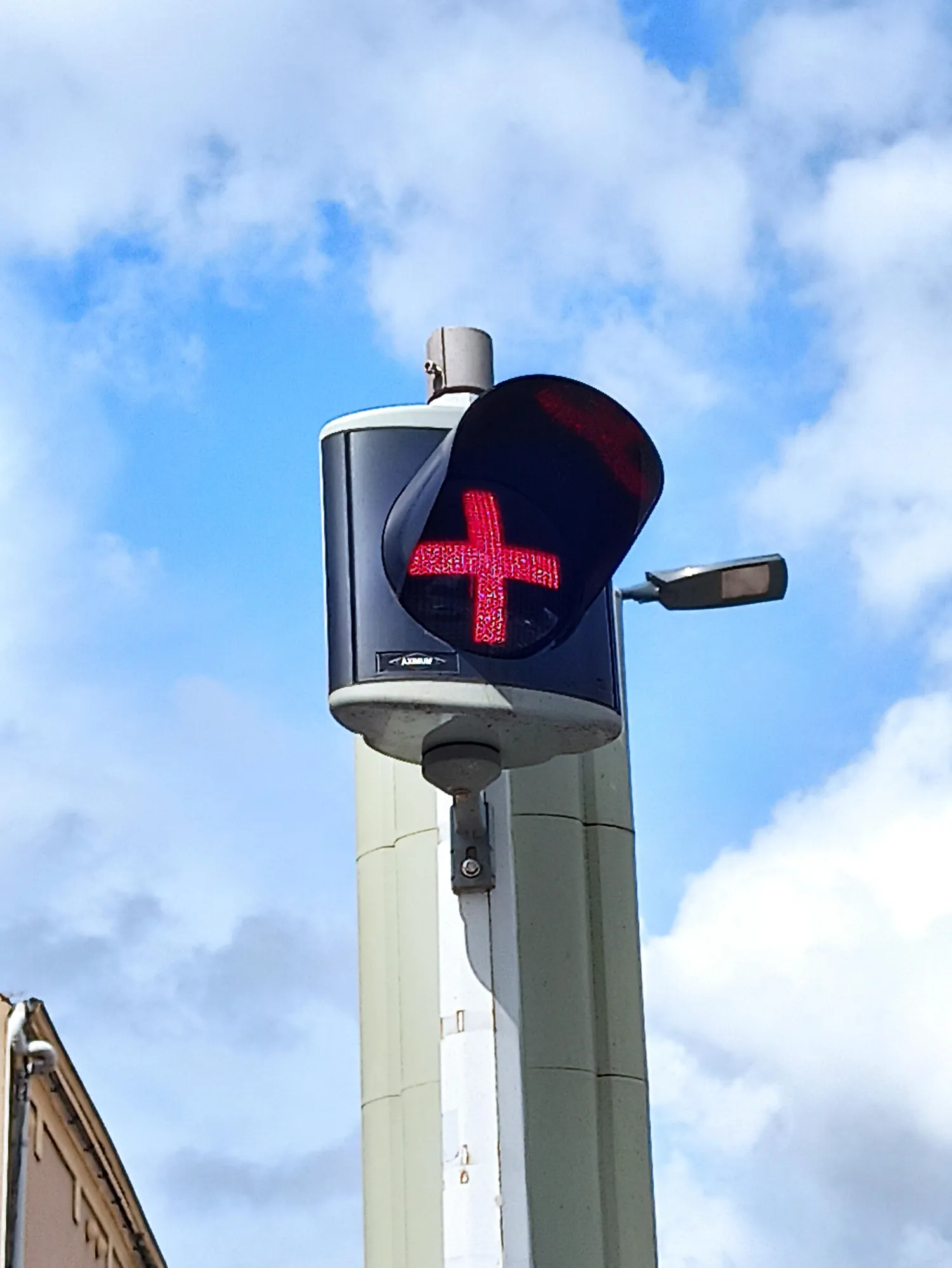 Ką reiškia raudonas kryžius ant šviesoforo?