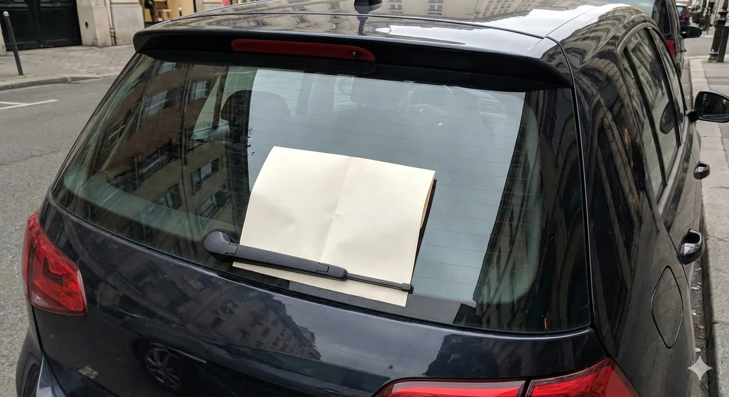 Ant galinio lango, dažniausiai po valytuvu, pritvirtinamas raštelis, skelbimas ar didesnis lankstinukas. Jis padedamas taip, kad pradėjus važiuoti trukdytų matomumui, tačiau stovinčio automobilio savininkas jo dažniausiai nepastebi.