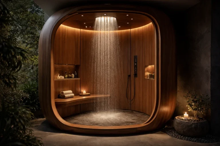 Dušo kapsulė iš esmės keičia patirtį. Tai nebėra atvira erdvė su šaltu stiklu ir skubančiu vandens srautu. Vietoje to – pusiau uždaras, minkštų formų „kokonas“, kuriame žmogus fiziškai ir psichologiškai atsiskiria nuo aplinkos. Jokio šalto oro gūsio, jokio veidrodžio, primenančio skubėjimą, jokio išorinio triukšmo. Tik jūs ir sąmoningai sukurta aplinka.