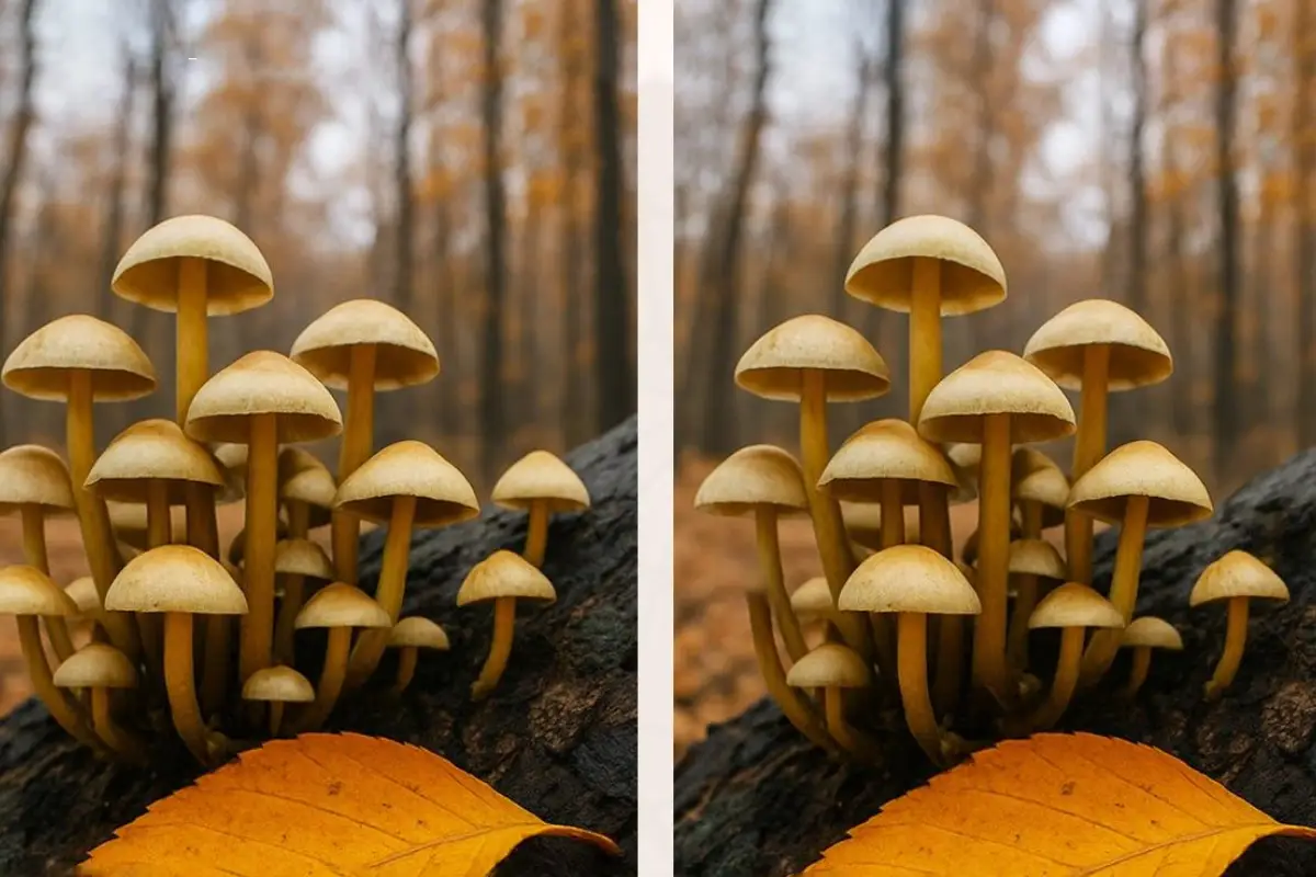 Štai naujausias iššūkis: dvi identiškos grybų kompozicijos, o tarp jų – trys paslaptingi, beveik mikroskopiniai pokyčiai. Jei sugebate juos rasti per 11 sekundžių, atsiduriate tarp vos kelių procentų žmonių, turinčių išskirtinai aštrų matymą.