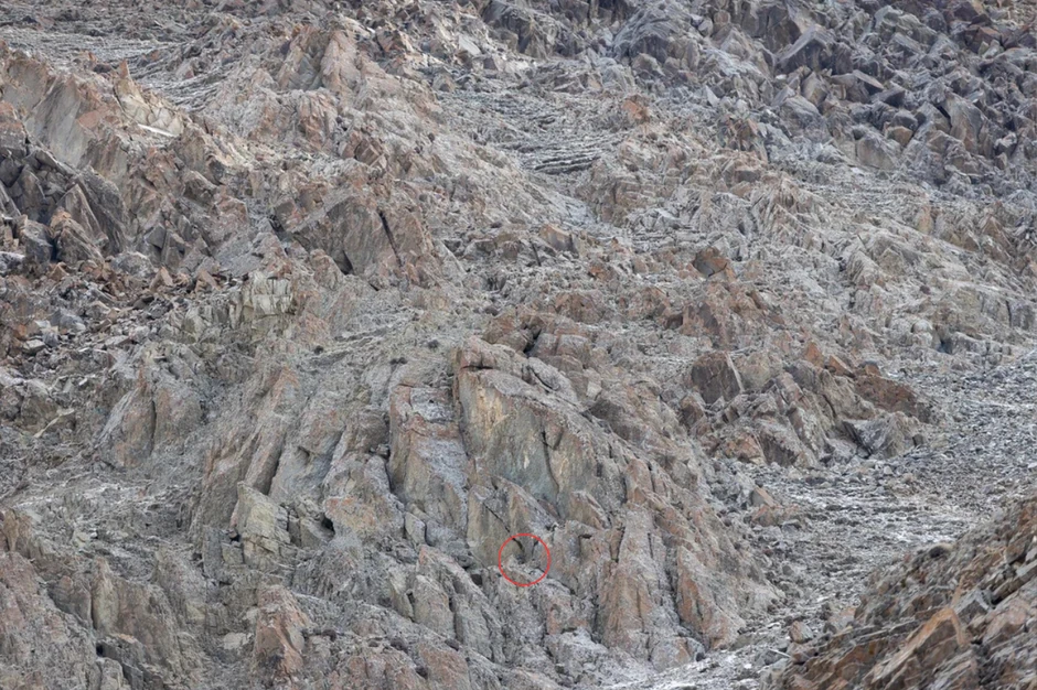 Kur žiūrėti? Nukreipkite žvilgsnį į nuotraukos centrą, o tada leiskite akims nuslysti šiek tiek žemiau. Maždaug ties šeštadaliu nuotraukos aukščio nuo apačios, pačiame centre, pamatysite tiesiai į jus žiūrinčio leopardo galvą.
