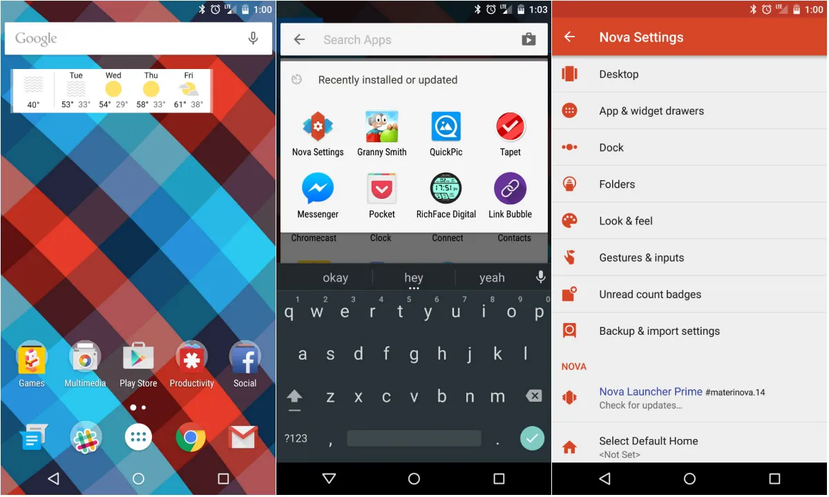 - Octopi Launcher – panaši koncepcija, lengvesnis perėjimas buvusiems „Nova“ naudotojams,