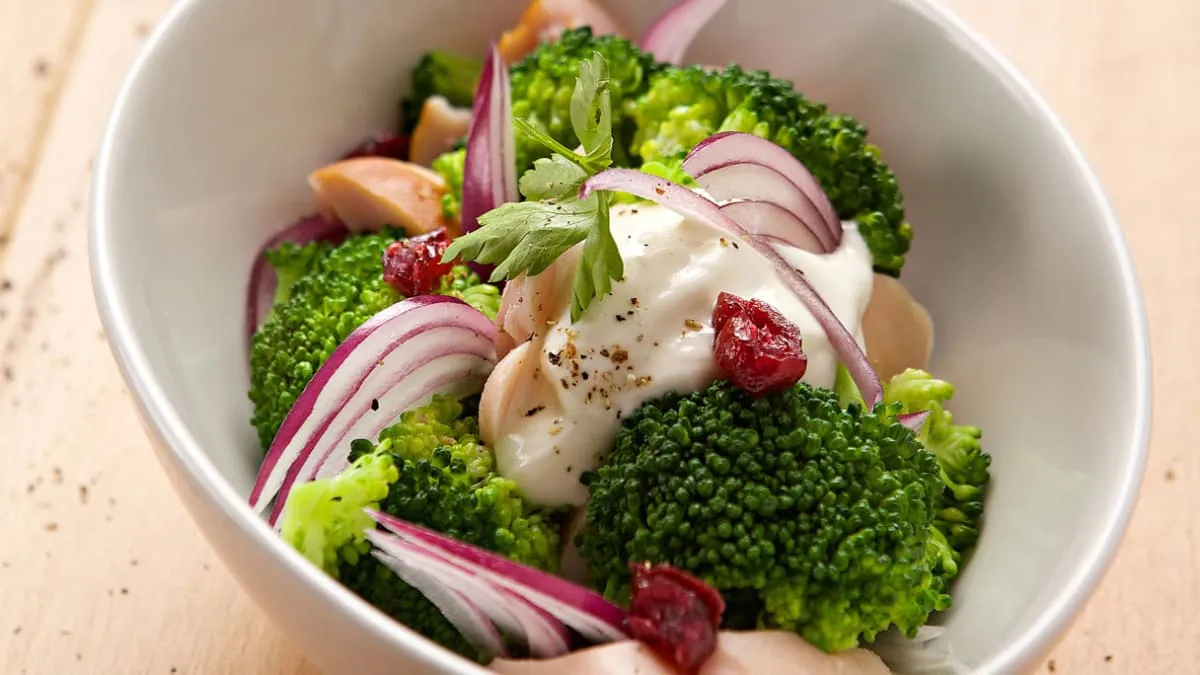 Brokolių mišrainė su rūkyta vištiena ir spanguolėmis