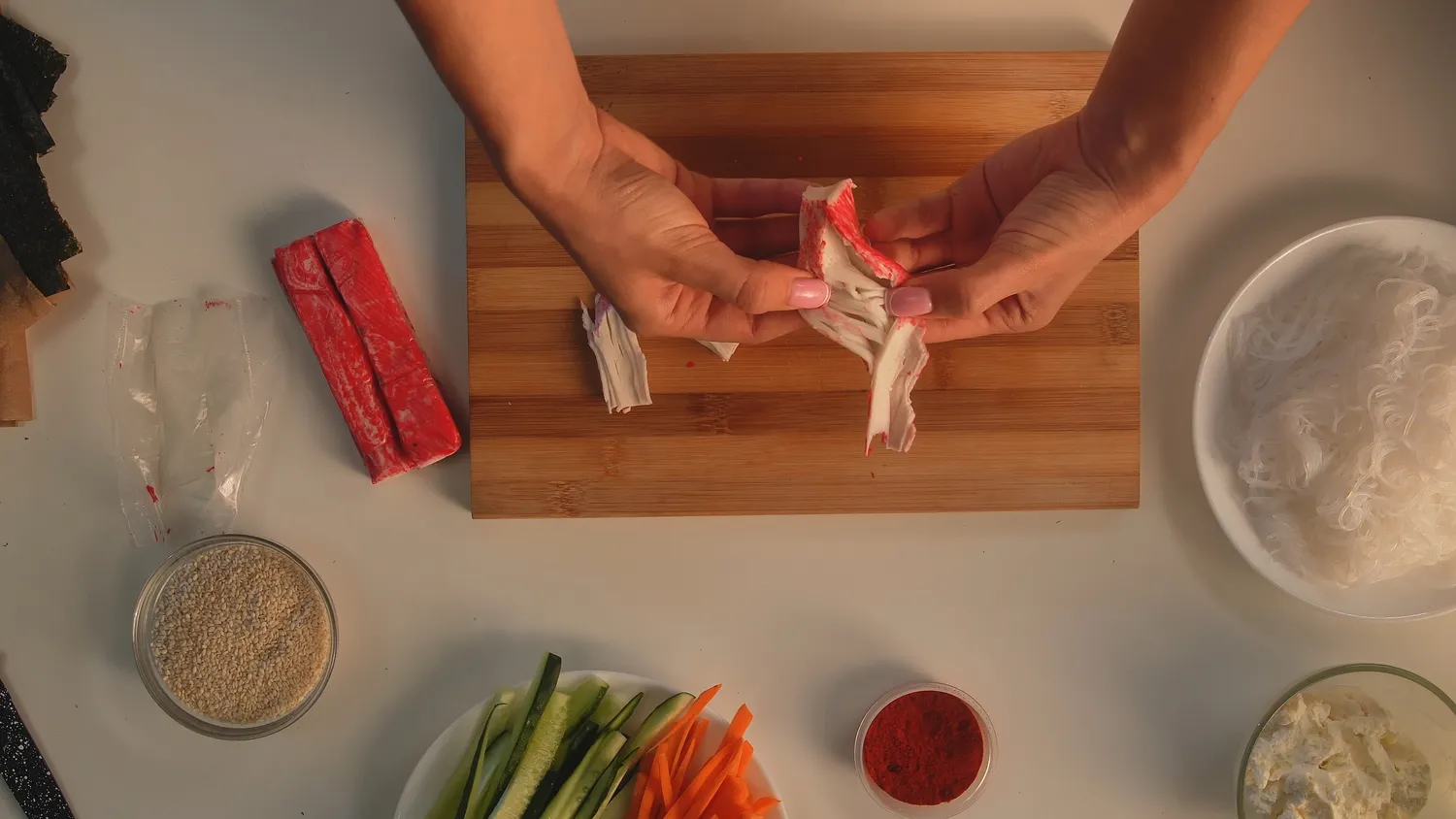 Įspūdingas šventinis „ritinys“ iš krabų lazdelių
