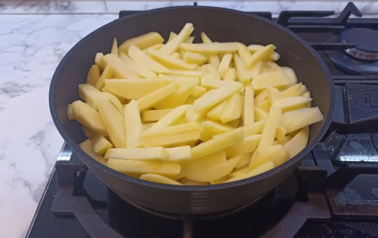 Supjaustytas bulves dar kartą reikia nuplauti karštu vandeniu. Tai padės pašalinti krakmolo perteklių ir plutelė taps traškesnė. Taip pat svarbu gabalėlius prieš kepant nusausinti, kad vanduo, patekęs į aliejų, nesitaškytų po virtuvę.