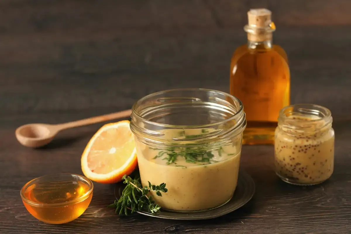 - Ingredientai: medus, garstyčios, alyvuogių aliejus, druska, pipirai.