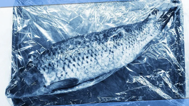 Šaldytą žuvį (filė ar visą skerdeną) palikite originalioje pakuotėje. Jei pakuotė plona arba jau pažeista, įdėkite ją į antrą, sandarų maišelį. Tai ir yra „dviejų pakuočių“ esmė – apsauga nuo oro ir drėgmės.