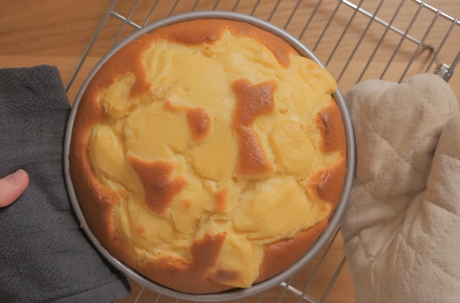 Pyragą kepkite 170–175 °C temperatūroje 35–45 minutes. Tiksli trukmė priklauso nuo orkaitės, todėl geriausia tikrinti mediniu iešmeliu – ištrauktas jis turi būti sausas. Pyragas paruoštas, kai švelniai spustelėtas per vidurį nustoja spyruokliuoti.
