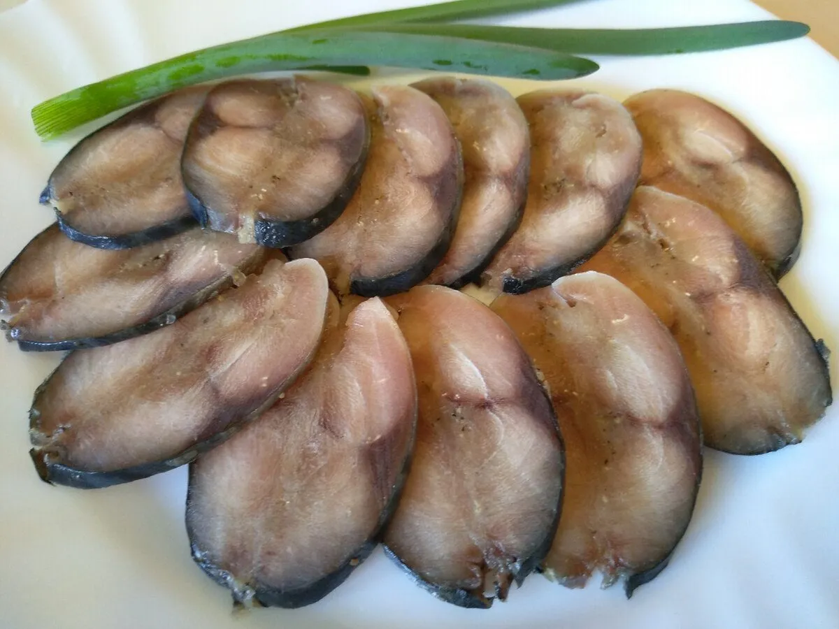 Skumbrės balykas paruoštas! Jį galite pjaustyti plonomis riekelėmis ir patiekti kaip: