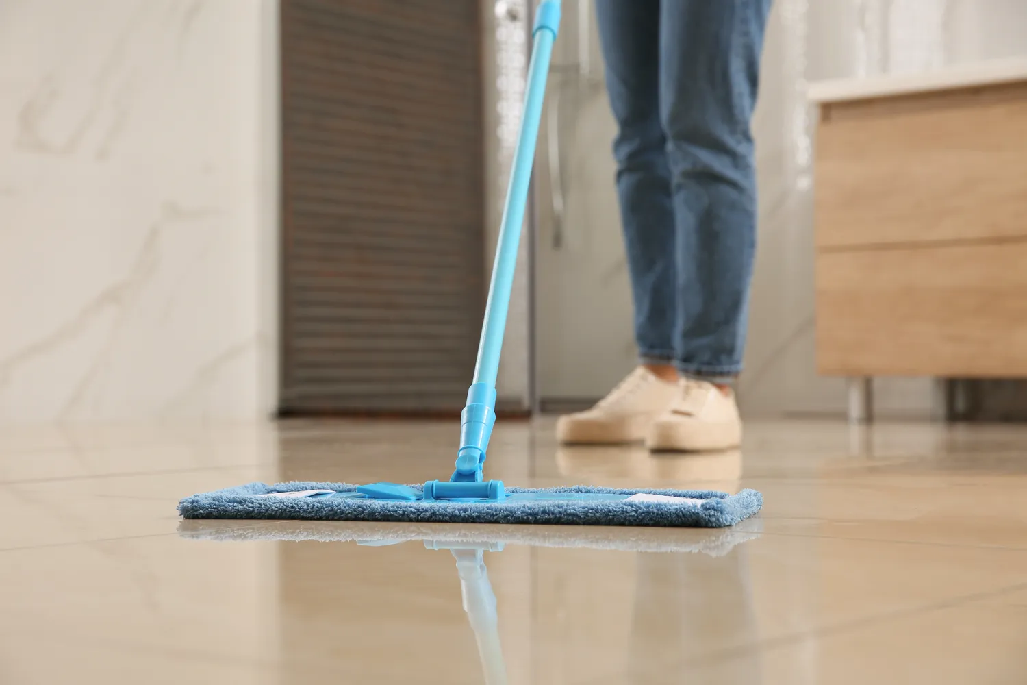 Prieš plovimą visada pirmiausia išsiurbiu grindis arba bent jau gerai surenku dulkes ir smėlį. Šitą žingsnį laikau labai svarbiu, nes jei pradėsi plauti neišvalytą paviršių, smulkios šiukšlės gali ne tik maišytis po grindis, bet ir subraižyti dangą. Tik tada imu šluostę ar mikropluošto šepetį, gerai jį išgręžiu ir plaunu grindis kaip įprastai.