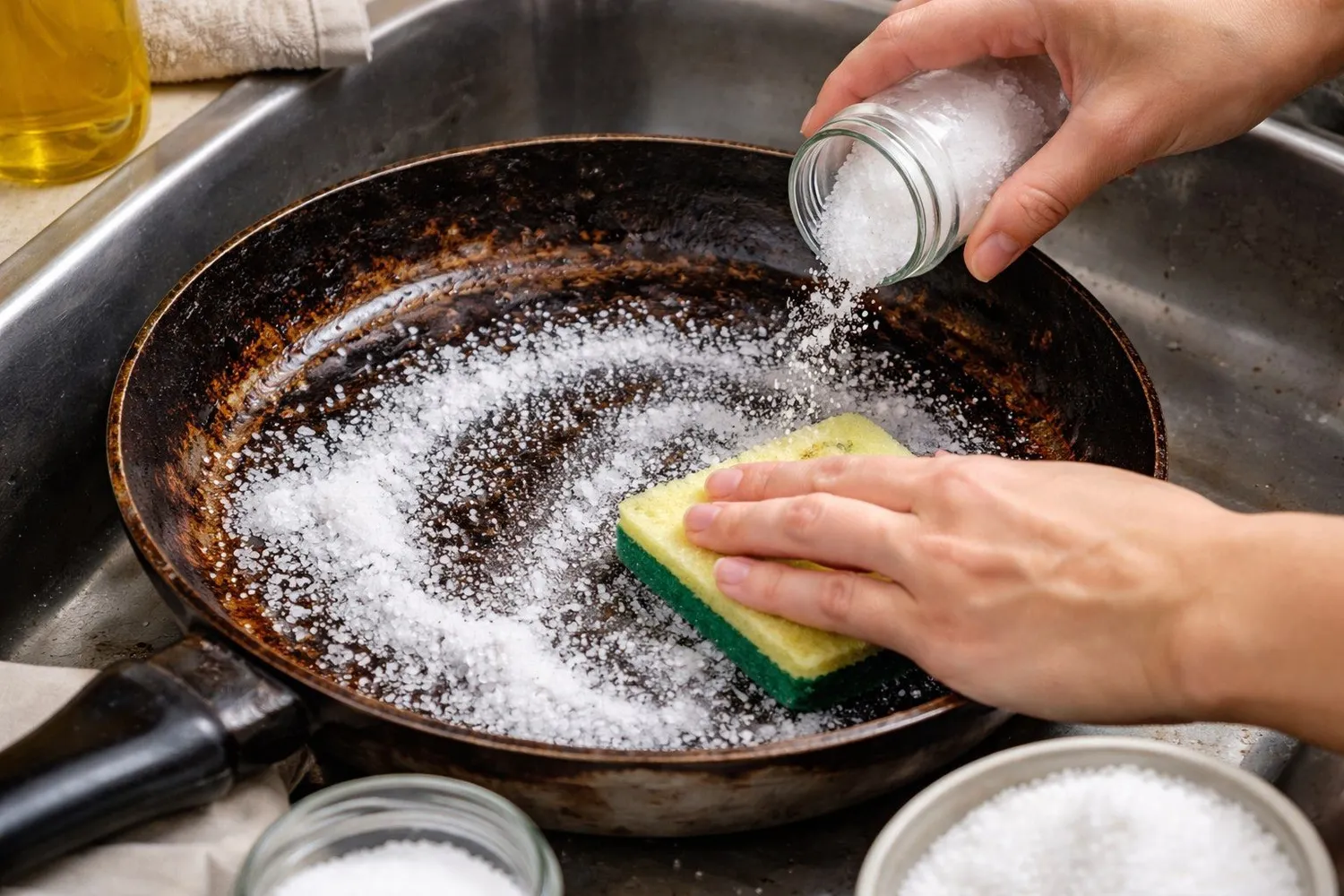 Galiausiai atradau labai paprastą būdą, kuris mane tikrai nustebino. Dabar užtenka kelių įprastų ingredientų, kuriuos visada turiu namuose, ir net sunkiausios nuosėdos nusivalo daug lengviau. Keisčiausia tai, kad pagrindinis dalykas čia yra paprasta druska, į kurią anksčiau net neatkreipdavau dėmesio kaip į valymo priemonę.