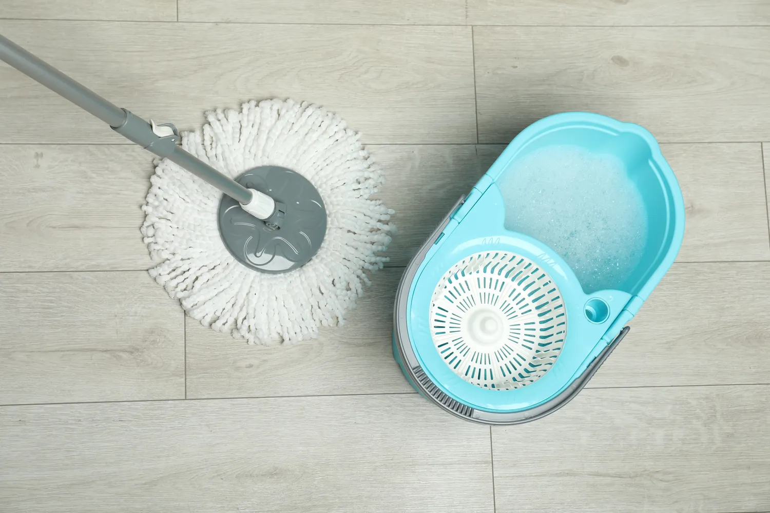 Tuomet į vandenį įberiama maždaug trys arbatiniai šaukšteliai druskos ir viskas gerai išmaišoma, kol kristalai visiškai ištirpsta. Po to galima pradėti įprastą grindų plovimą.