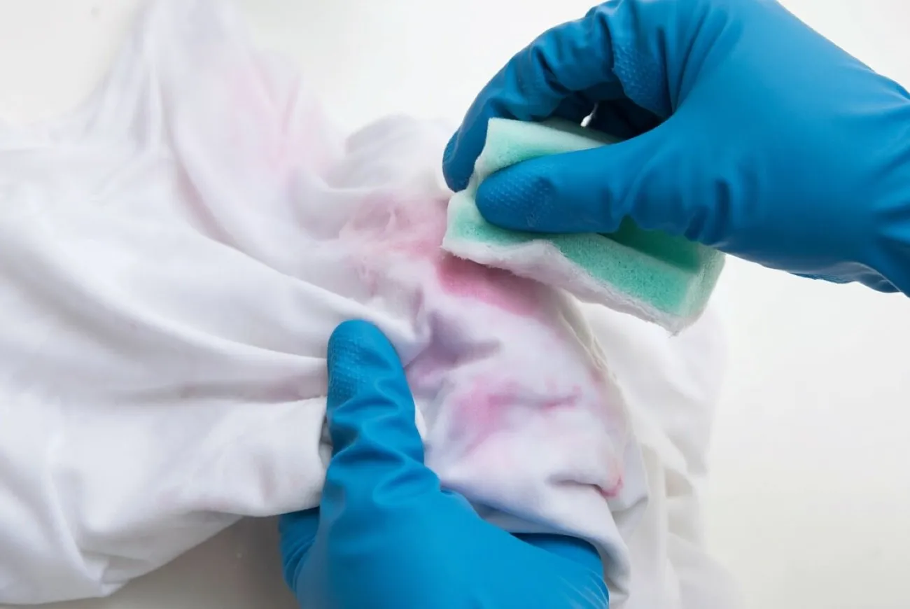 Pirmiausia ant dėmės beriama valgomoji druska. Ji čia veikia ne kaip stebuklinga priemonė, o labai praktiškai – kaip švelnus abrazyvas, padedantis ardyti dėmės sluoksnį. Kai druska įtrinama į audinį, ant viršaus pilami du šaukštai acto. Tuomet susidaro rūgštesnė terpė, kuri padeda skaidyti dažų likučius.