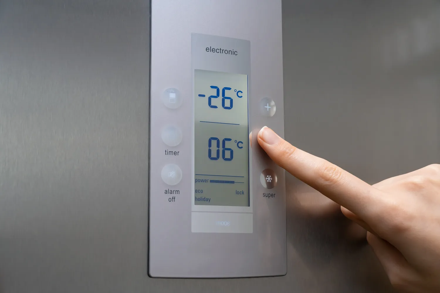 Jei šaldytuvas turi skaitmeninį ekraną, viskas paprasta: nustatykite maždaug +4 °C. Kai kuriuose modeliuose galima rinktis +3 °C ar +5 °C – daugeliu atvejų tai irgi normalus intervalas, bet +4 °C yra geras kompromisas tarp maisto saugos ir energijos taupymo.