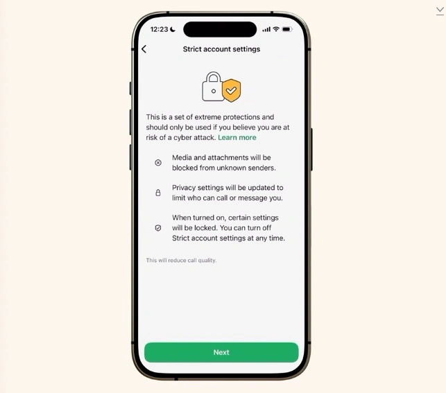 „Žaliasis milžinas“ skelbia karą kibernetinėms atakoms ir įkyrioms brukalų (spam) žinutėms. Nors „WhatsApp“ jau seniai šifruoja pokalbius, naujoji funkcija, pavadinta „Griežti paskyros nustatymai“ (angl. Strict Account Settings), pakelia saugumą į visai kitą lygį. Tai parinktis, kuri automatiškai užrakina vartus visiems, kurių nėra jūsų adresų knygelėje.