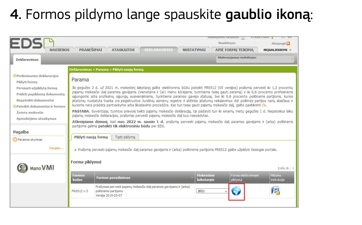 Spauskite gaublio ikoną (pildyti elektroniniu būdu) prie naujausios formos versijos (v.5).