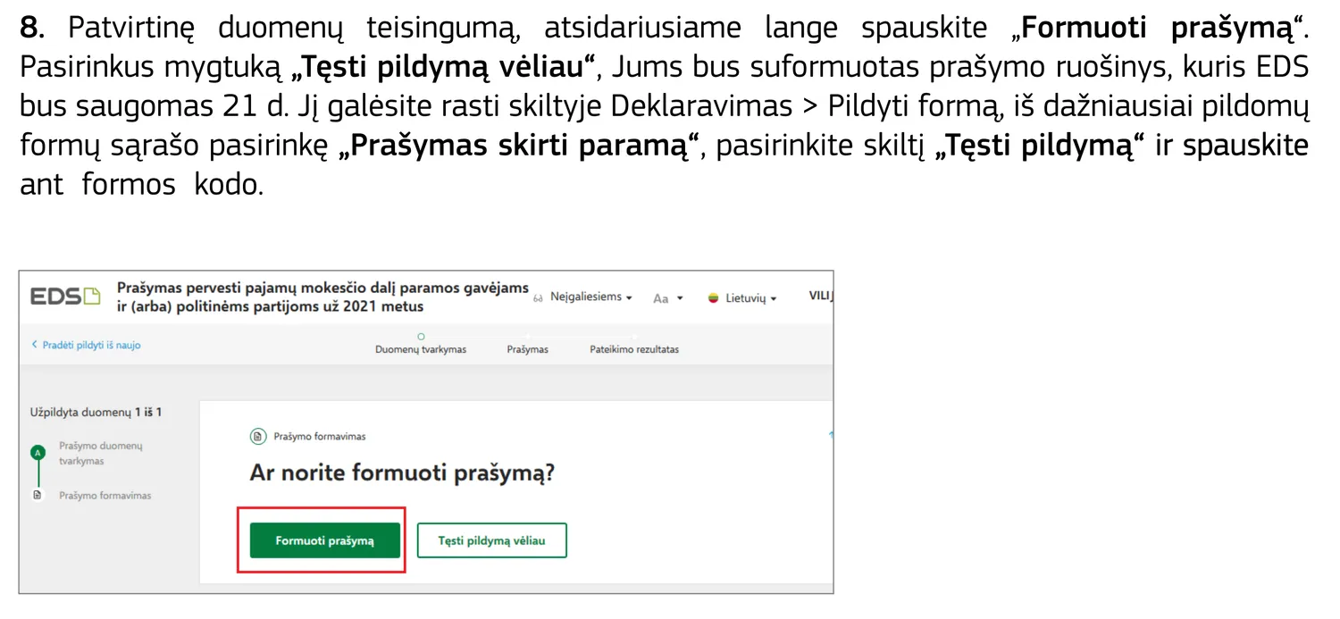 Jei viskas gerai, spauskite „Formuoti prašymą“ ir galiausiai mygtuką „Pateikti“.