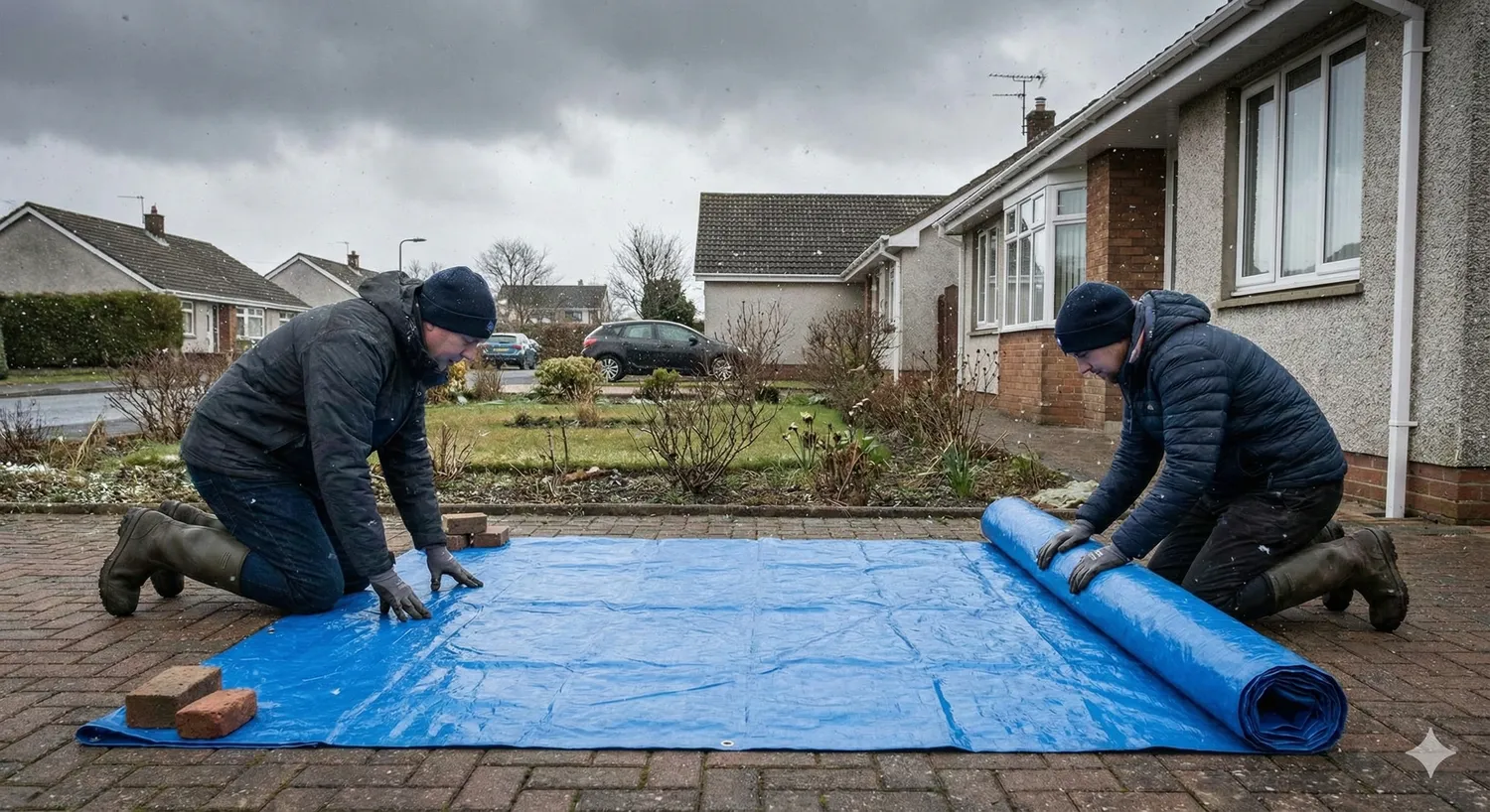 Kai pradeda snigti, visas sniegas krenta ant plėvelės, o ne ant grindinio. Paviršius po ja lieka sausas ir švarus.