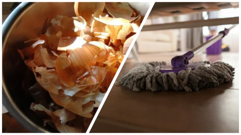 Paimkite 2–3 saujas svogūnų lukštų, užpilkite 1 litru verdančio vandens ir virkite 10–15 minučių. Tada perkoškite ir praskieskite kibire vandens. Po to nieko daugiau dėti nereikia – galite plauti grindis.