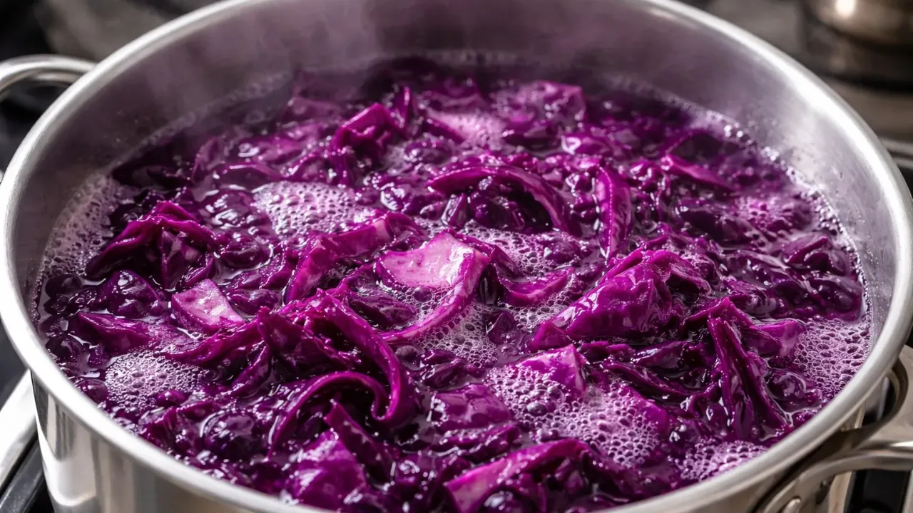 Pirmiausia kopūstą reikia susmulkinti ir sudėti į puodą su vandeniu taip, kad daržovė būtų visiškai apsemta. Mišinys verdamas maždaug 20–30 minučių, kol vanduo įgauna sodrų violetinį atspalvį.