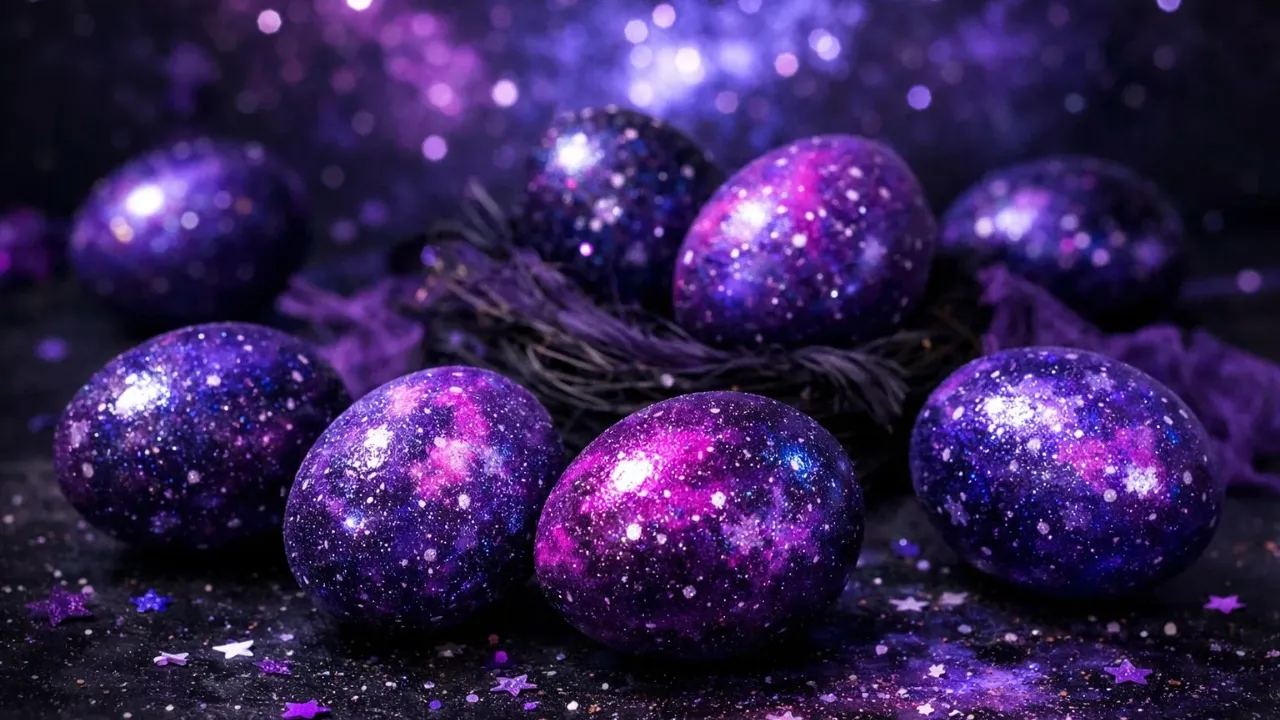 Šis būdas pastaraisiais metais išpopuliarėjo dėl neįprasto rezultato: kiaušiniai įgauna mėlynus, violetinius ar net beveik juodus atspalvius, kurie primena kosminius atspalvius. Svarbiausia tai, kad viskas atliekama naudojant natūralius ingredientus.