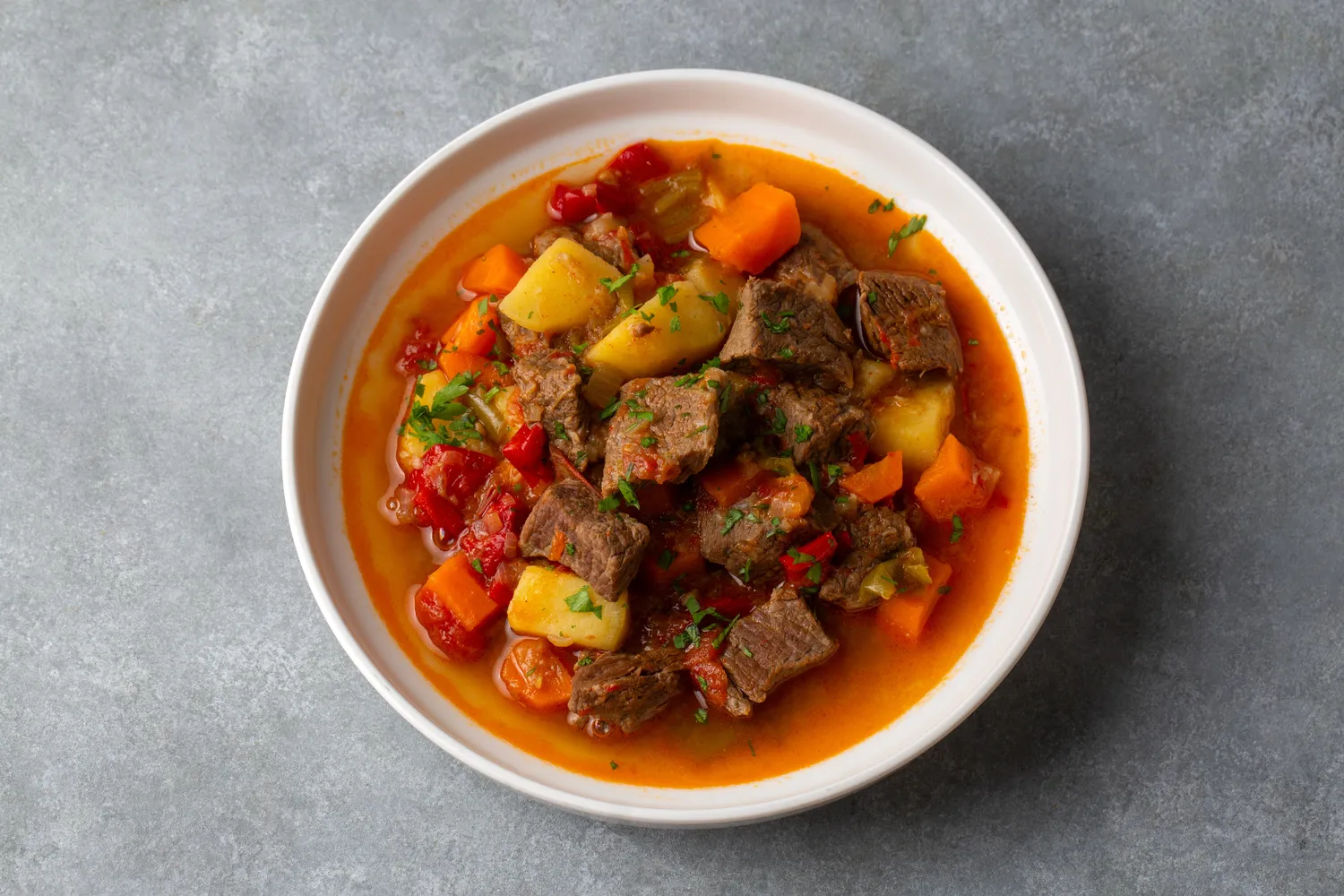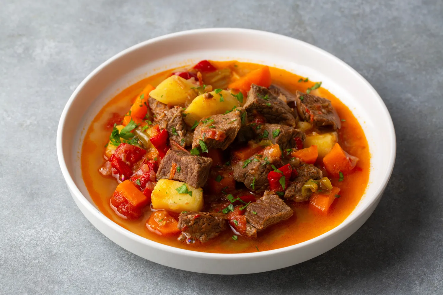 Tikras jautienos guliašas ir žavi tuo, kad jam nereikia nieko įmantraus. Tik gera mėsa, daug svogūnų, keli paprasti prieskoniai ir laikas. O rezultatas būna toks, kad po pirmo kąsnio iš karto pasidaro aišku, kodėl šį patiekalą mūsų močiutės gamindavo taip dažnai.