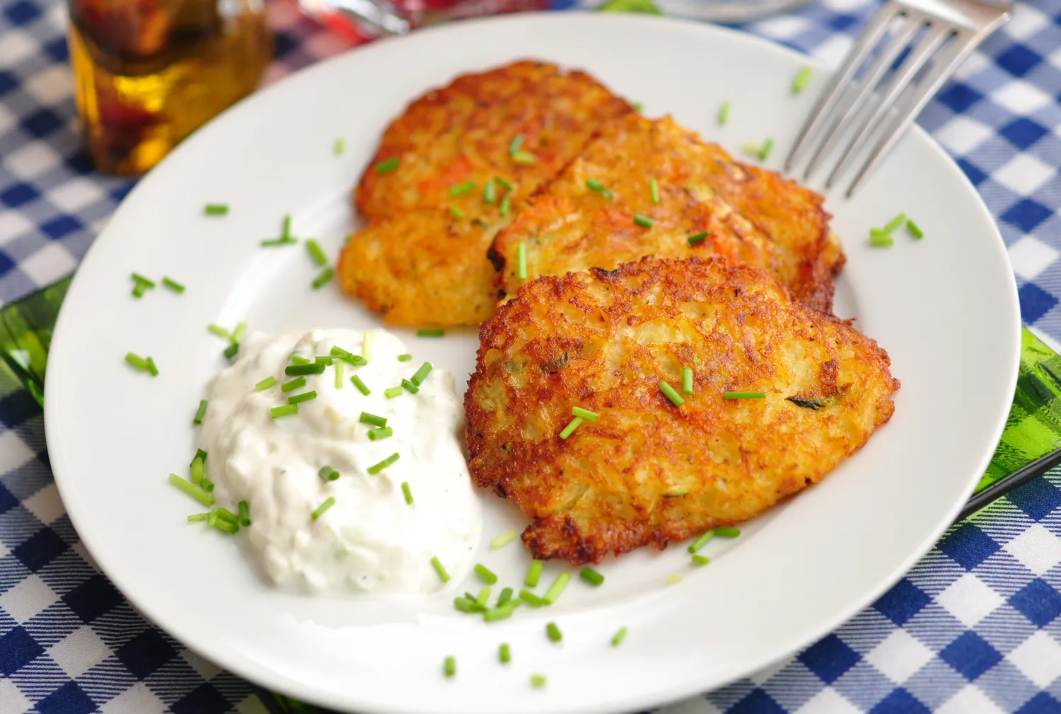 Tradiciškai bulviniai blynai patiekiami su grietine, tačiau yra ir kitų puikių variantų.