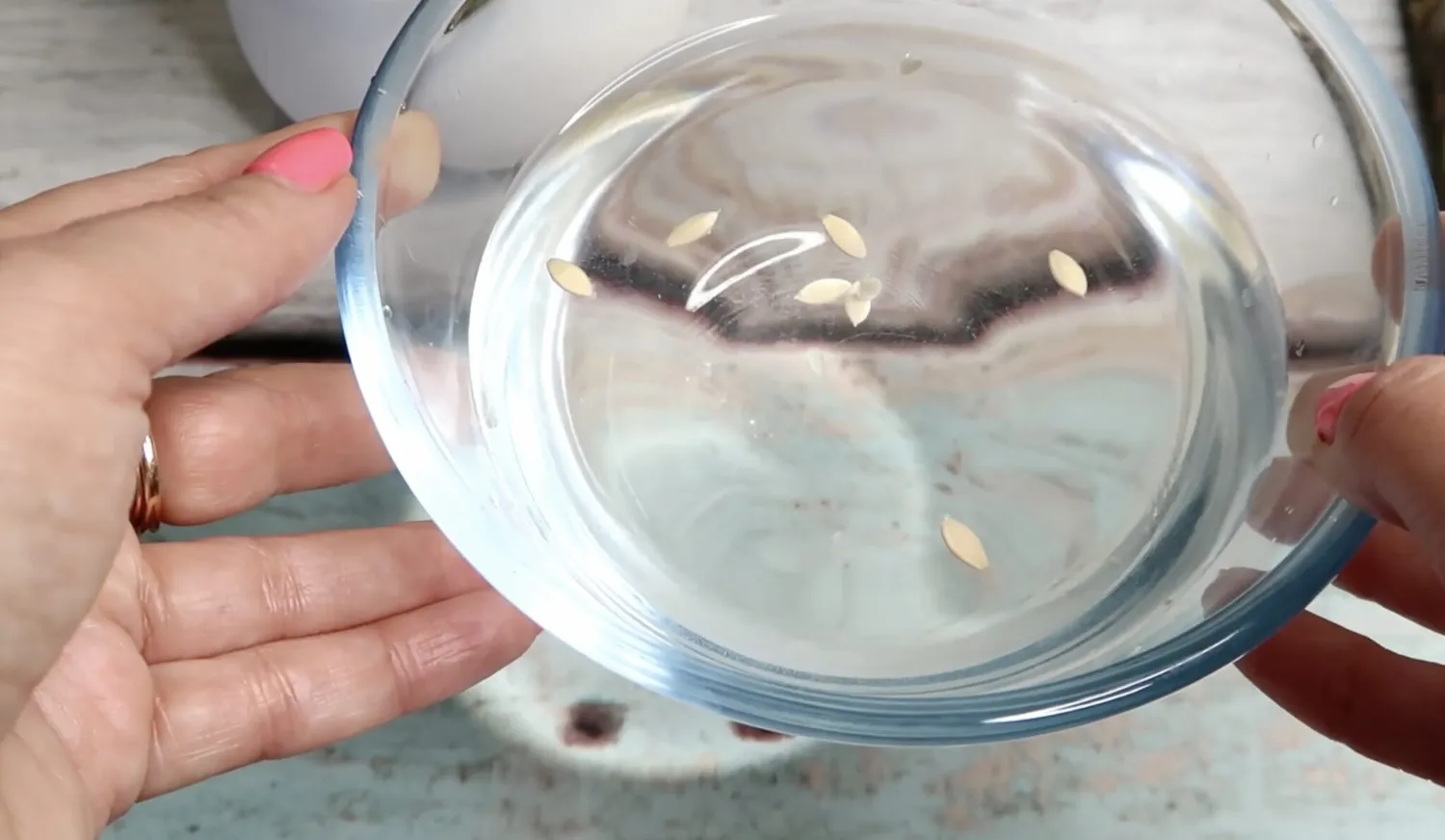 Ištirpinkite druską, suberkite sėklas ir palikite 10 minučių.