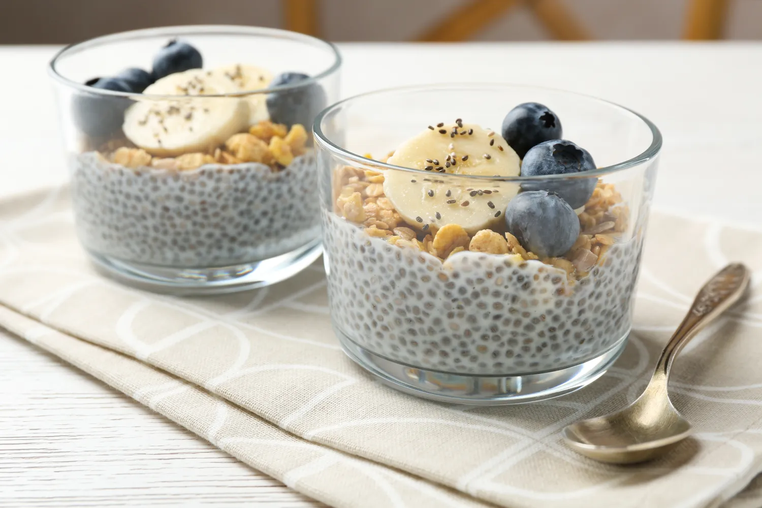 Chia sėklose daug skaidulų, ypač tokių, kurios sugeria skystį ir sudaro gelio pavidalo tekstūrą. Dėl to pudingas valgomas lėčiau, ilgiau užsibūna skrandyje ir nesukelia tokio jausmo, kad po pusryčių netrukus vėl norisi užkandžiauti.